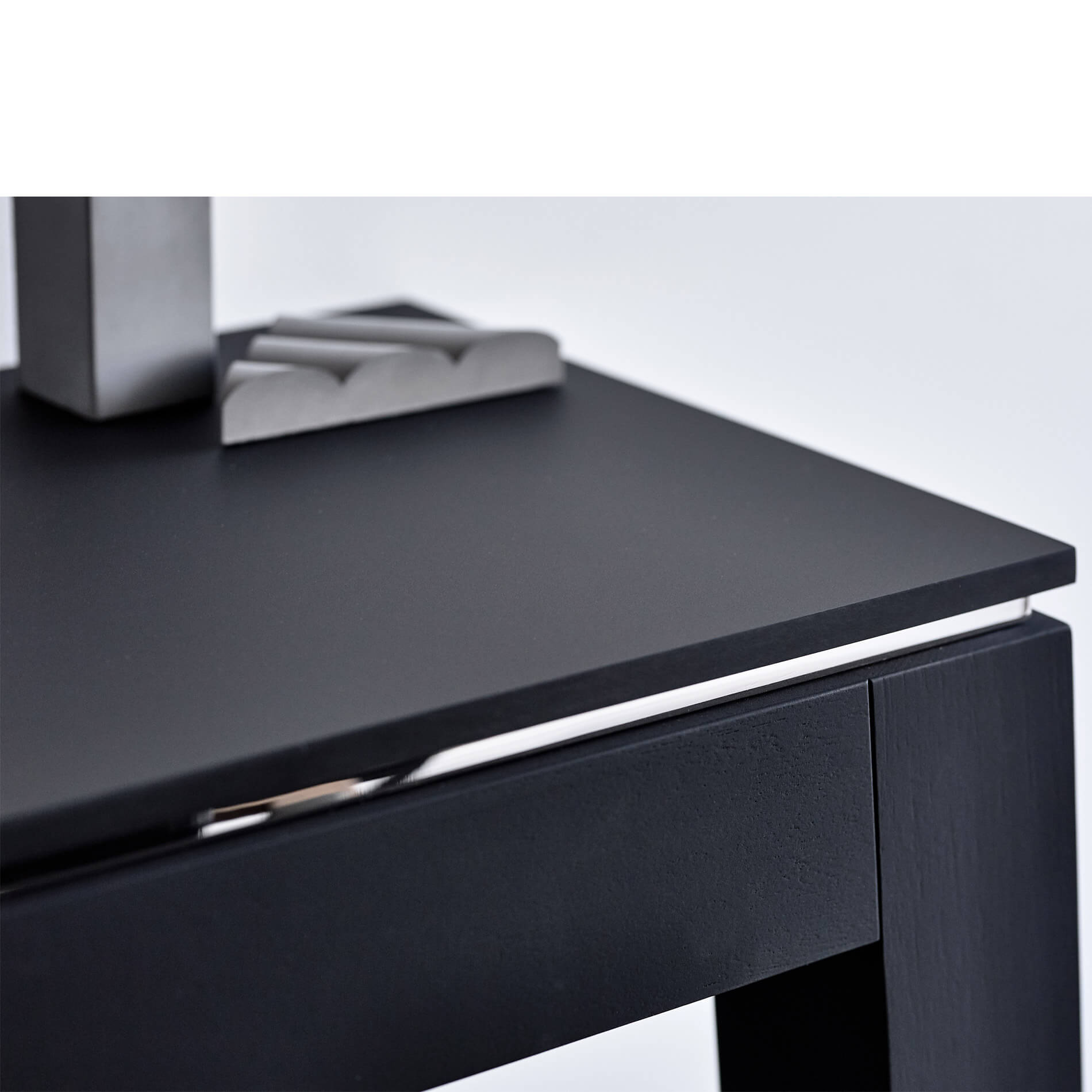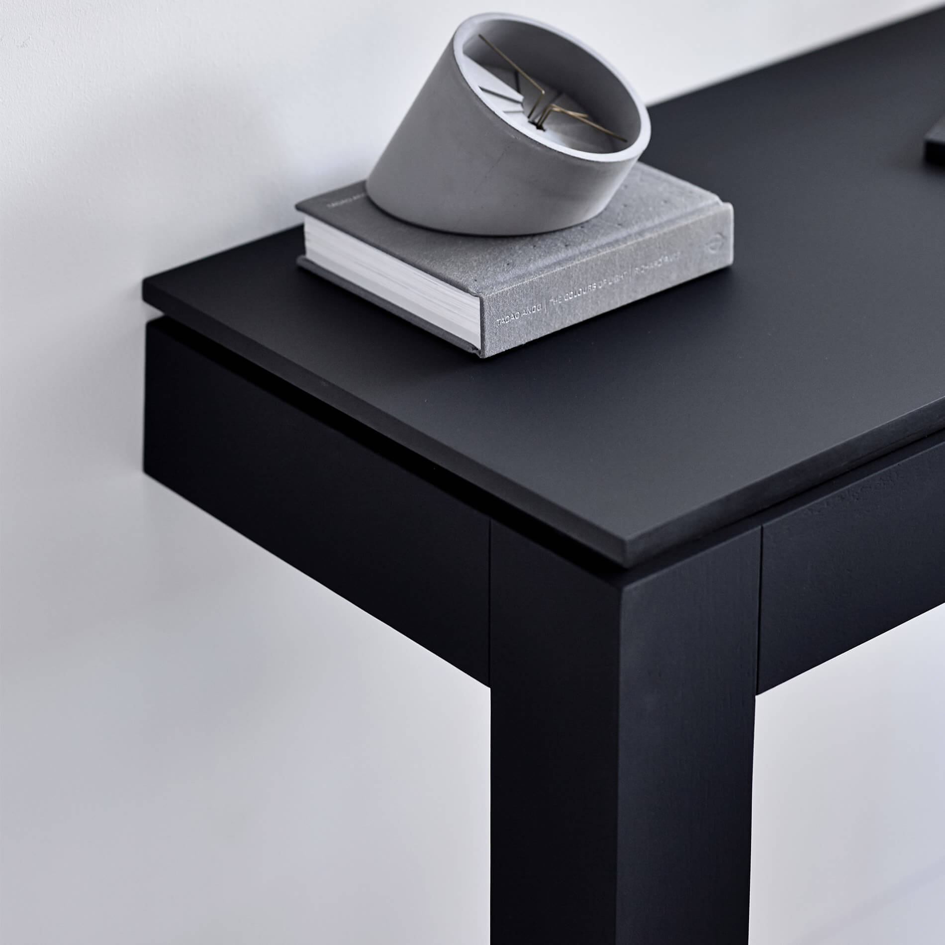 Solid American Oak stained in textured black suede coating.
