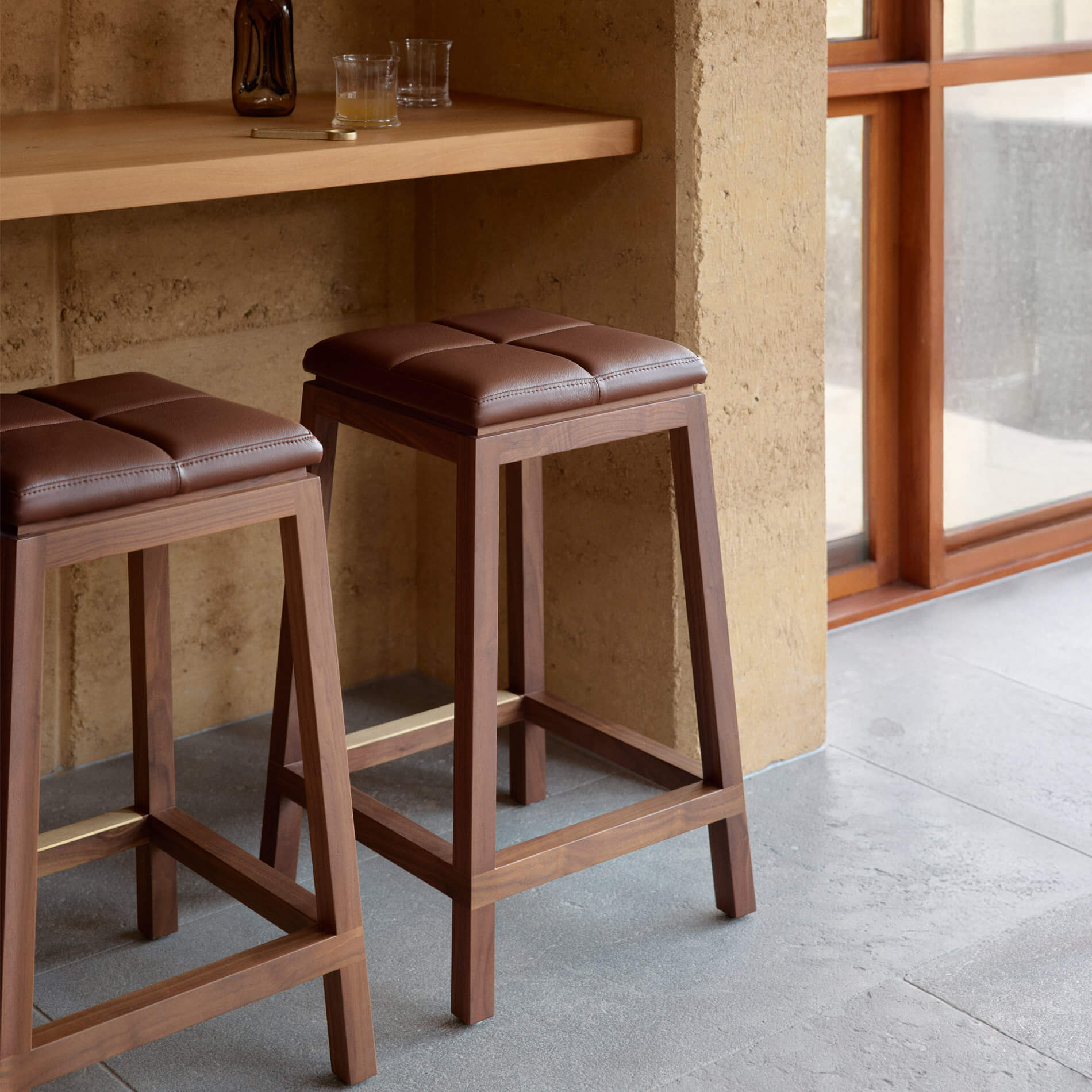 Their bold geometry meets the warmth of woven texture, forming a dialogue between comfort and architecture.