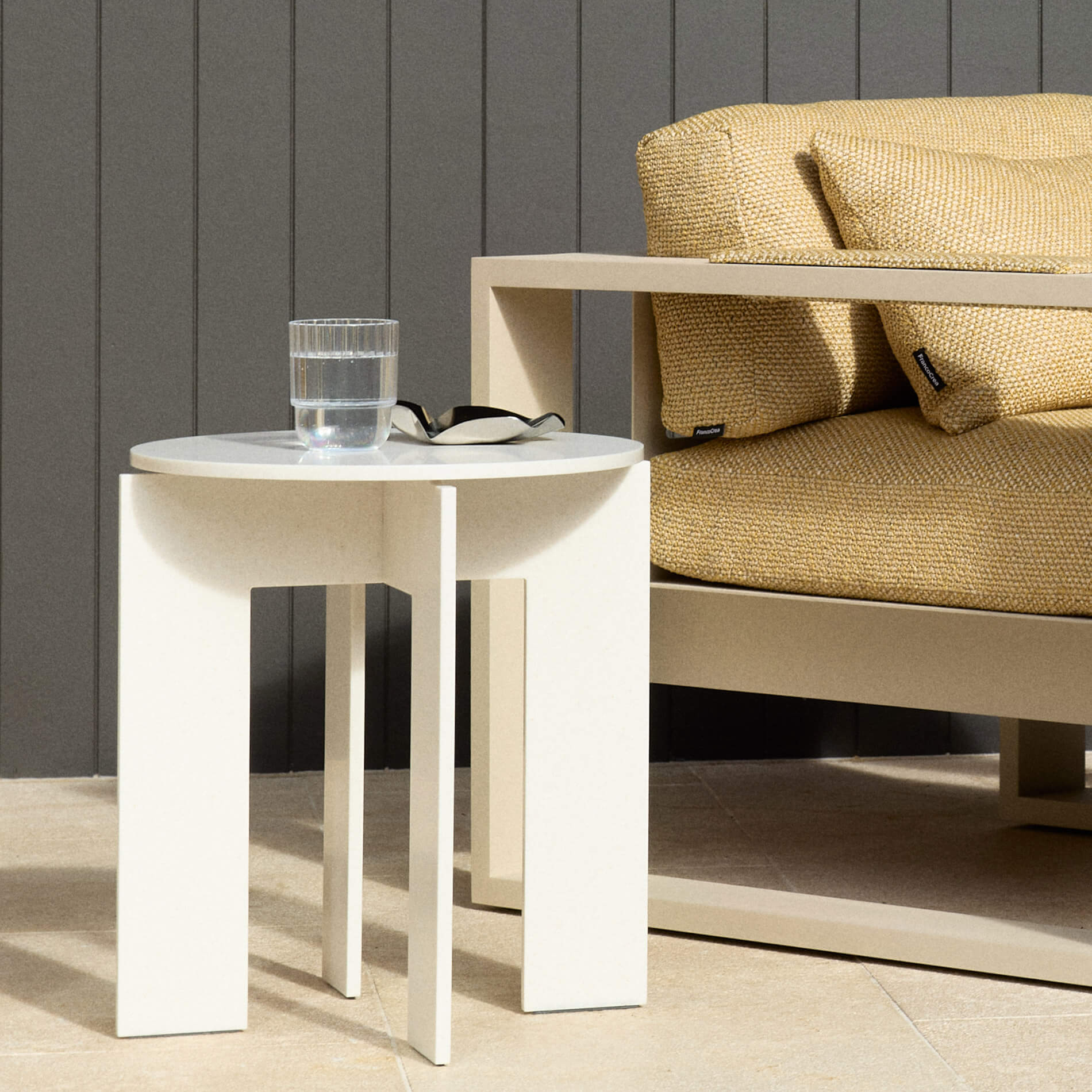 Accompanied by our adaptable Piana outdoor side table, crafted with robust Corian and made to withstand the elements, it completes the setting with quiet confidence. Equally suited to a morning coffee or an afternoon spritz, it’s the perfect companion for every unhurried moment.